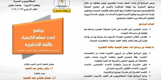 تعرف على برنامج إعداد معلم الفيزياء باللغة الانجليزية بكلية التربية جامعة حلوان - جريدة الوطن الاكبر