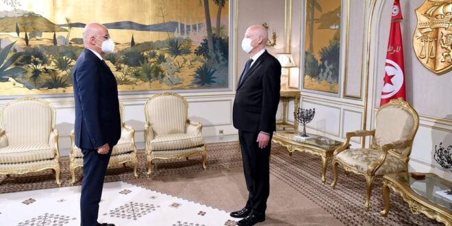 استقبل رئيس الجمهورية التونسيه قيس سعيّد، ظهر اليوم الثلاثاء 7 سبتمبر 2021 بقصر قرطاج، السيّد نيكوس ديندياس، وزير الخارجية اليوناني.