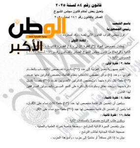 ينشر هذا القانون في الجريدة الرسمية ، ويُعمل به اعتبارًا من اليوم التالي لتاريخ نشره .