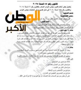 يستبدل بنصوص المواد أرقام (٤ / الفقرة الأولى، ٥ ، ۱۰) من قانون مجلس النواب الصادر بالقانون رقم ٤٦ لسنة ٢٠١٤ ، النصوص الآتية :