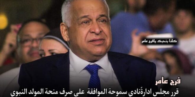 قرر مجلس ادارة نادي سموحة برئاسة المهندس محمد فرج عامر الاحتفال بذكري المولد النبي الشريف